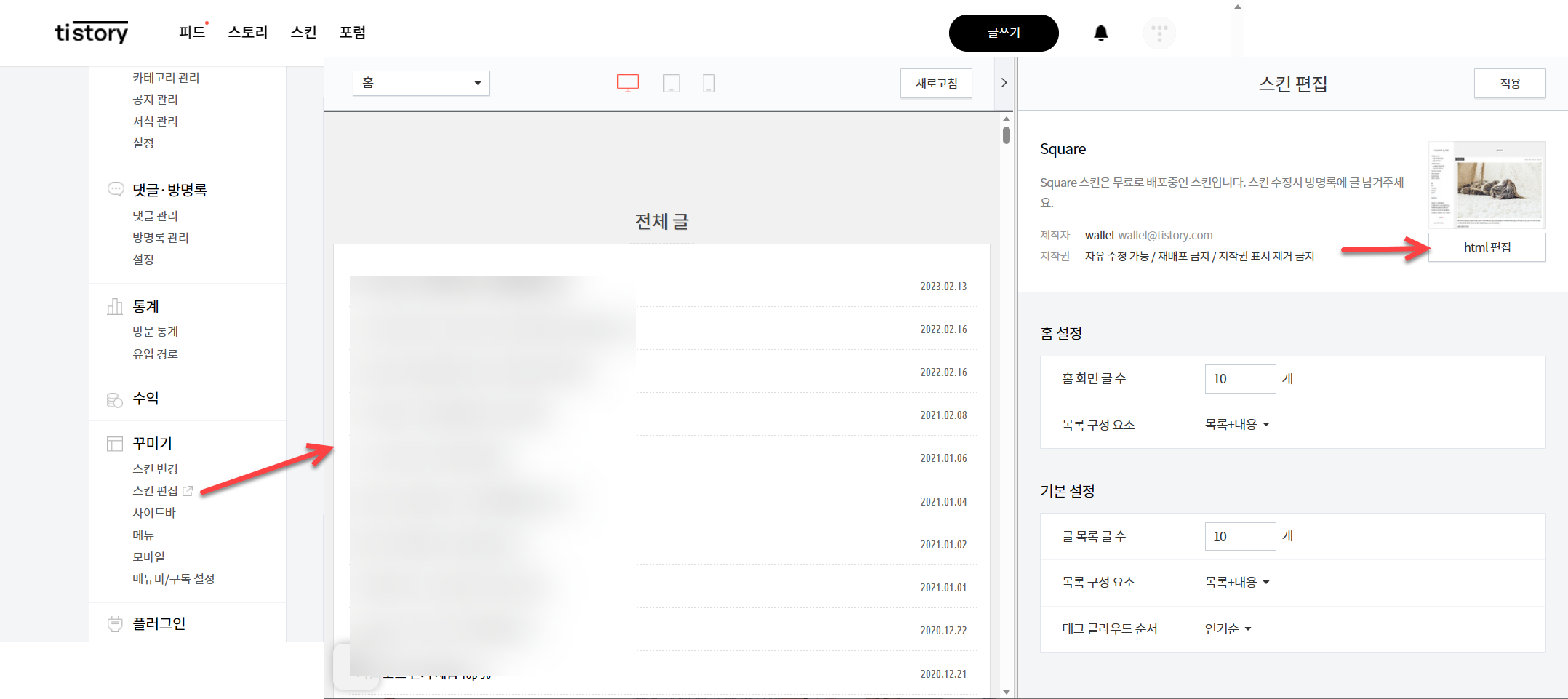 티스토리 스킨 편집