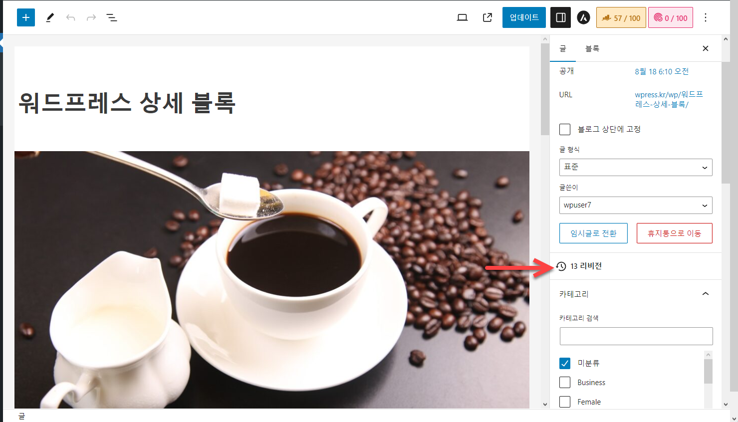 워드프레스의 리비전 기능