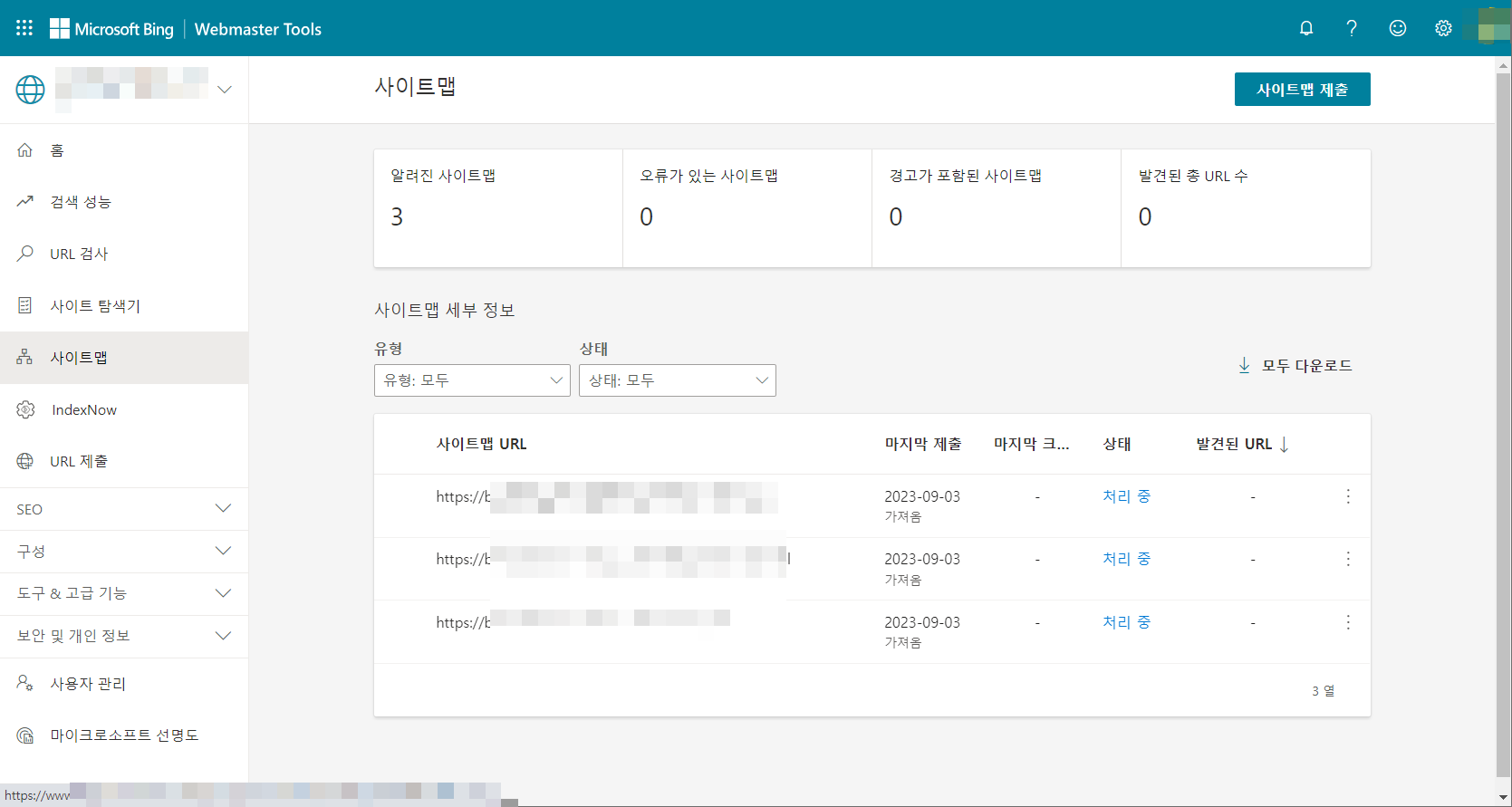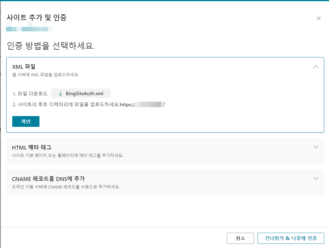 이상으로 구글 계정과 연동하여 빙(Bing) 웹마스터 도구에 사이트를 등록하는 방법을 살펴보았습니다. 상기 방법 대신에 수동으로 사이트를 추가하는 것도 가능하지만 사이트 인증 과정을 거치고, 사이트 추가 후에 사이트맵을 제출해야 하는 추가적인 과정이 필요합니다.