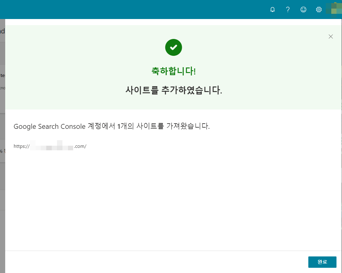 잠시 기다리면 사이트 추가가 완료됩니다.