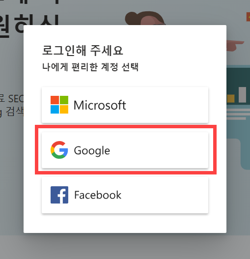 로그인 방법을 선택하는 팝업이 표시되면 Google을 선택합니다.