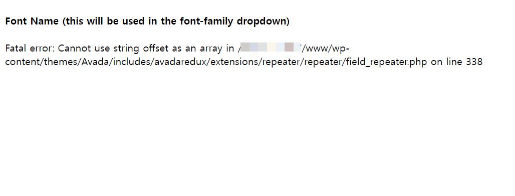 하지만 아바다 테마의 테마 옵션(Theme Options)에 접근하려고 시도하니 "Fatal error: Cannot use string offset as an array in..." 오류가 발생하면서 테마 옵션 페이지에 접근할 수가 없었습니다.