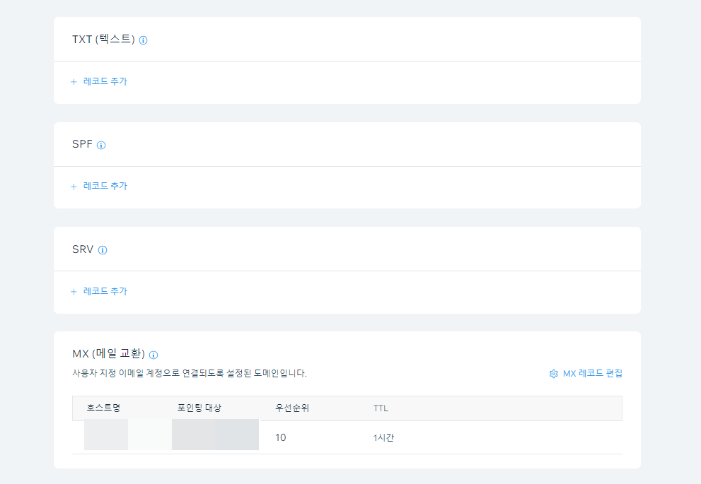 해당 도메인의 DNS 레코드를 관리할 수 있는 화면이 표시됩니다.