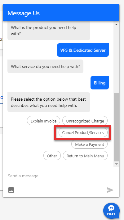 도움이 필요한 서비스를 묻는 질문(What service do you need help with?)이 표시되면 Billing을 선택합니다.