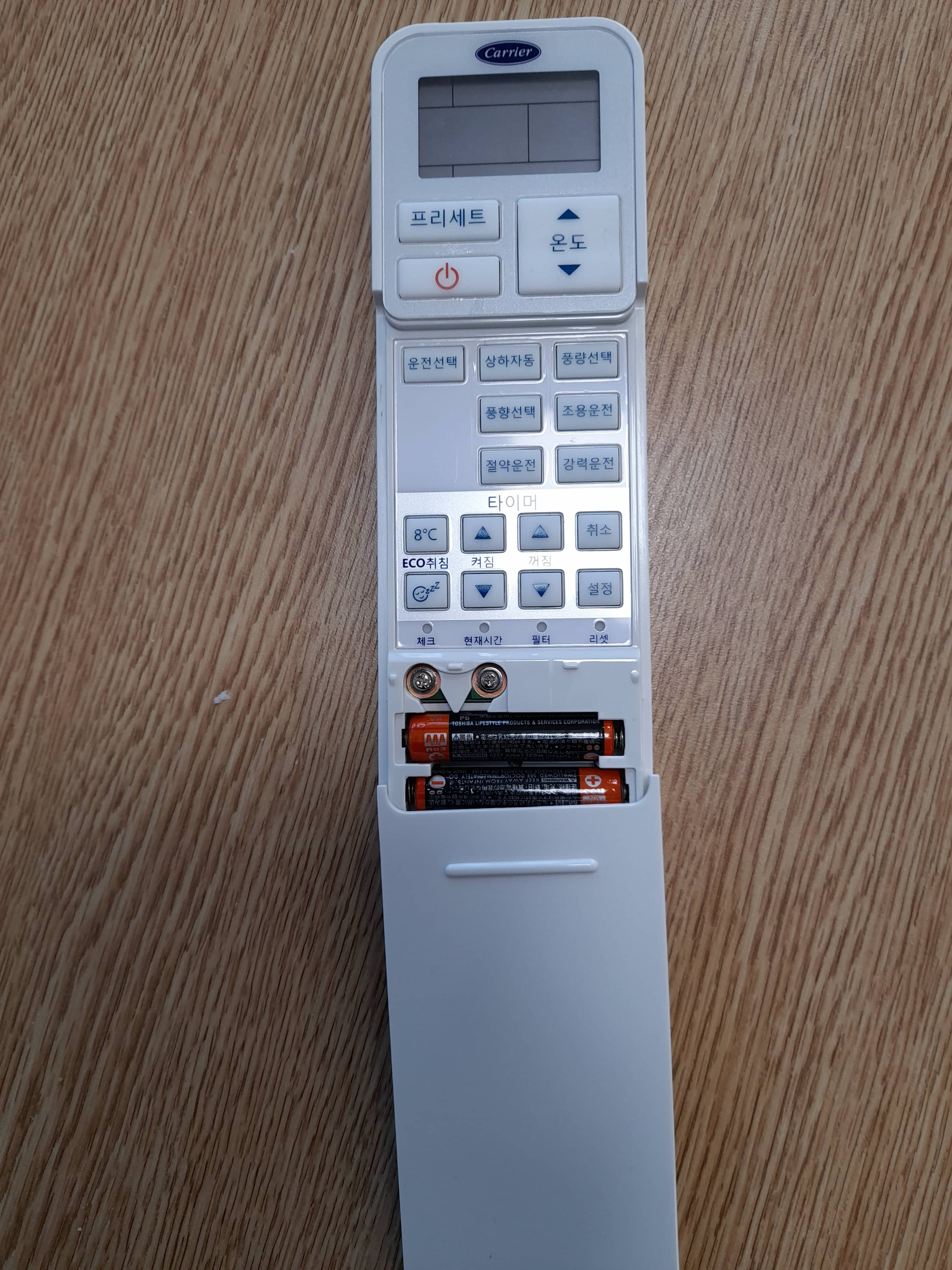 하지만 캐리어 냉난방기 리모컨의 배터리를 교체하는 데 한참 시간이 걸렸습니다.