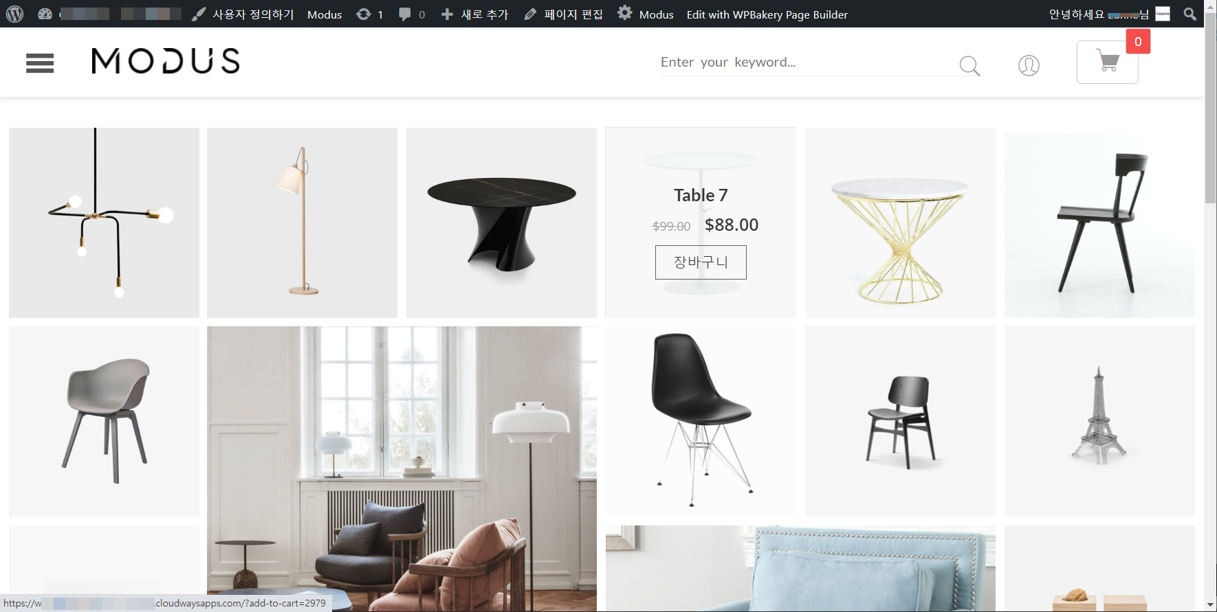 데모 설치가 필요한 사이트를 살펴보니 카페24에 Modus라는 우커머스 테마가 설치되어 있었습니다.