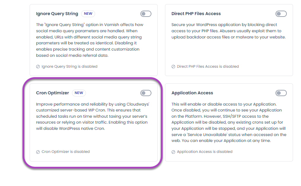 Cron Optimizer는 클라우드웨이즈의 맞춤화된 서버 기반의 WP Cron을 사용하여 성능과 신뢰성(안정성)을 향상시킨다고 합니다. 실제로 예약 발행이 잘 안 되는 경우 이 옵션을 활성화하여 문제가 해결되었다고 하시는 분도 계십니다. 저는 모든 워드프레스 애플리케이션에 대하여 이 옵션을 활성화하고 있습니다.