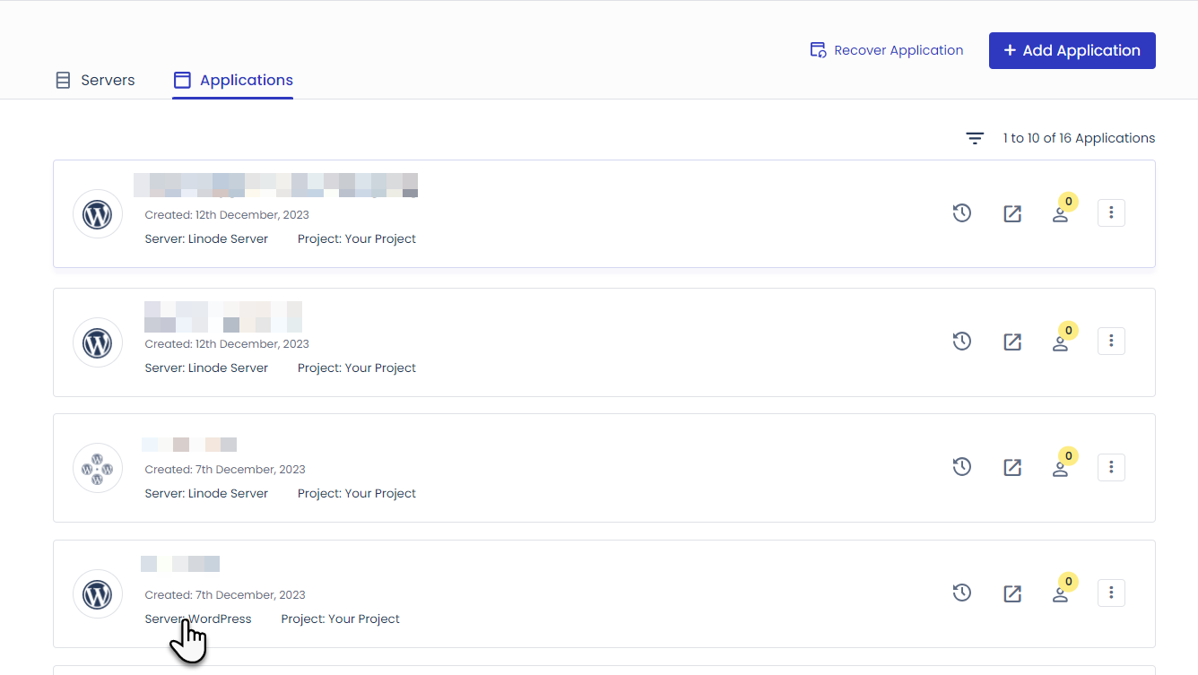 Applications 페이지에서 해당 애플리케이션을 선택합니다.