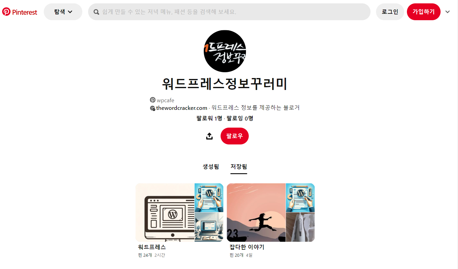방문자 유입에 얼마나 도움이 될지 모르겠지만, 없는 것보다는 낫지 않을까 하는 생각으로 핀 일괄 만들기 기능을 사용해 보았습니다. 제 핀터레스트 프로필 주소입니다. 한 번 구경해보시기 바랍니다.😄😄😄