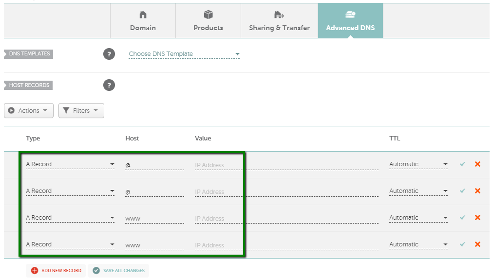 네임칩을 이용하는 경우 Advanced DNS에서 아래 그림과 같이 4개의 A 레코드를 추가할 수 있습니다.