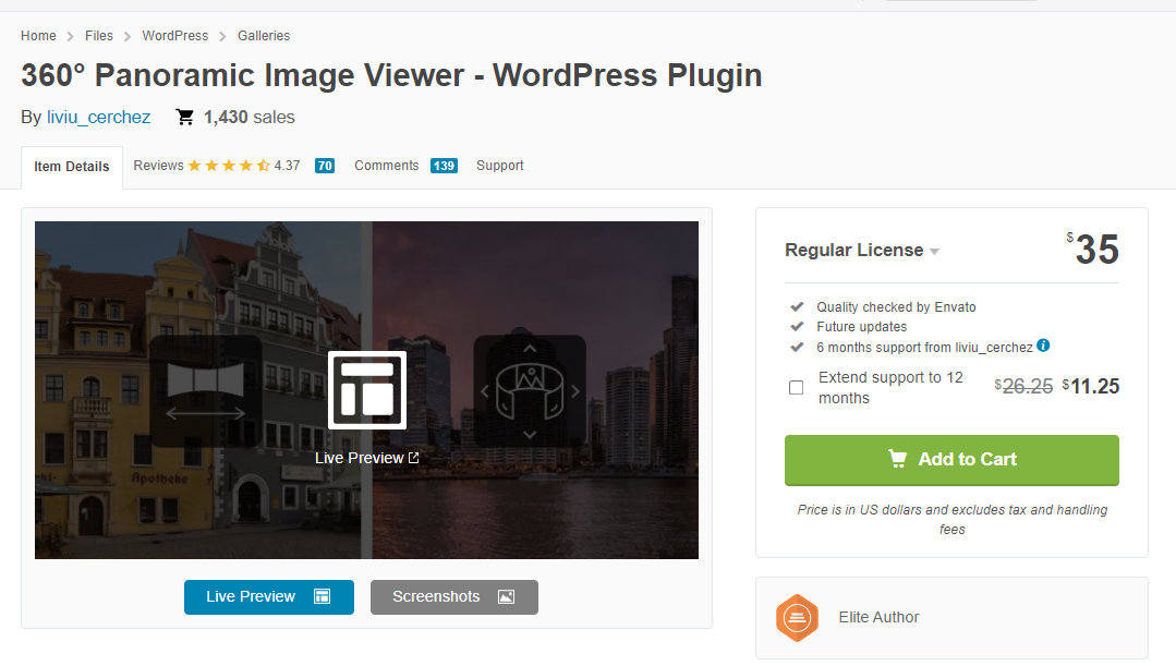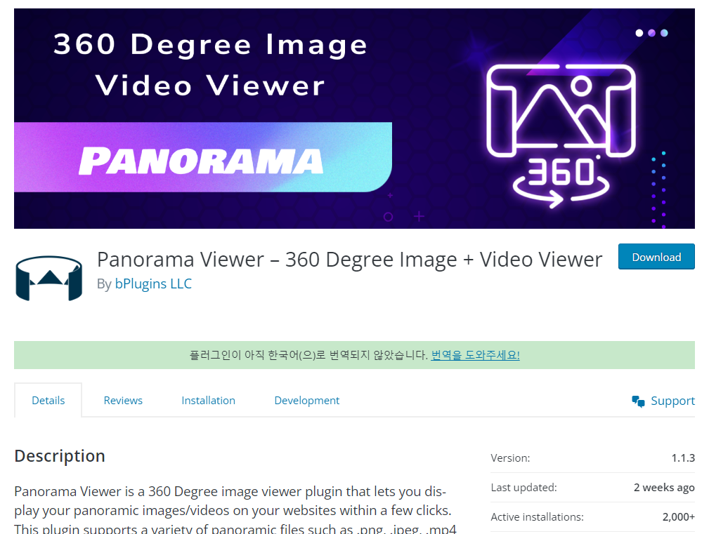360° Panoramic Image Viewer 플러그인에 대한 자세한 내용은 플러그인 판매 페이지를 참고하세요.