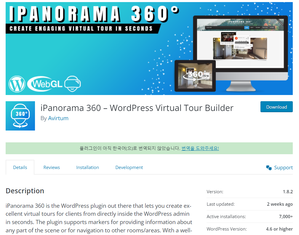 iPanorama 360에 대한 자세한 내용은 플러그인 페이지를 참고해 보세요.