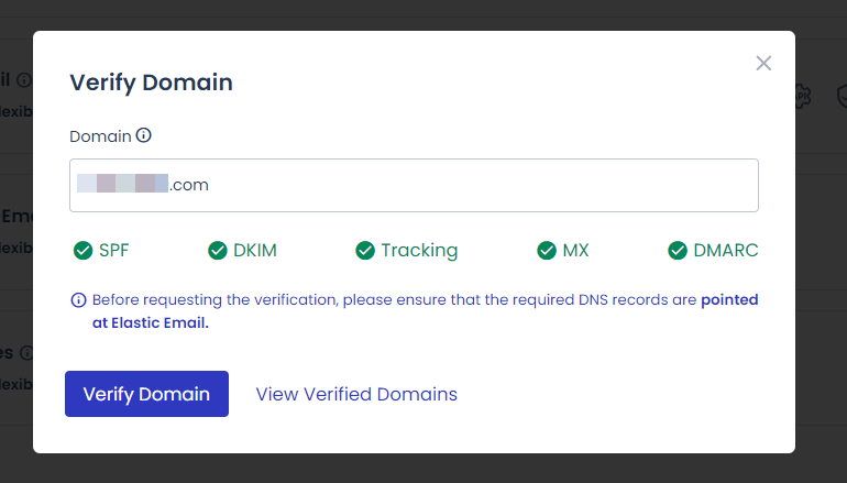 DNS 레코드를 추가한 후에 Verify Domain에서 도메인의 DNS 레코드를 확인할 수 있습니다.
