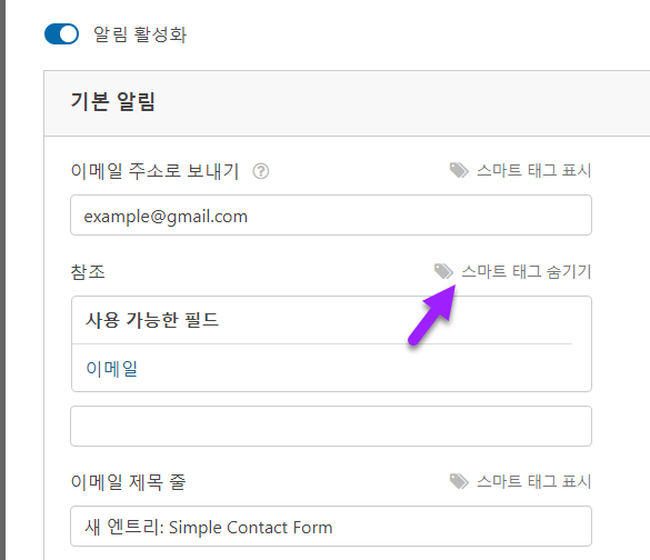 워드프레스 WPForms 문의폼에서 참조 이메일을 지정하려는 경우 먼저 참조 이메일 옵션을 활성화해야 합니다.