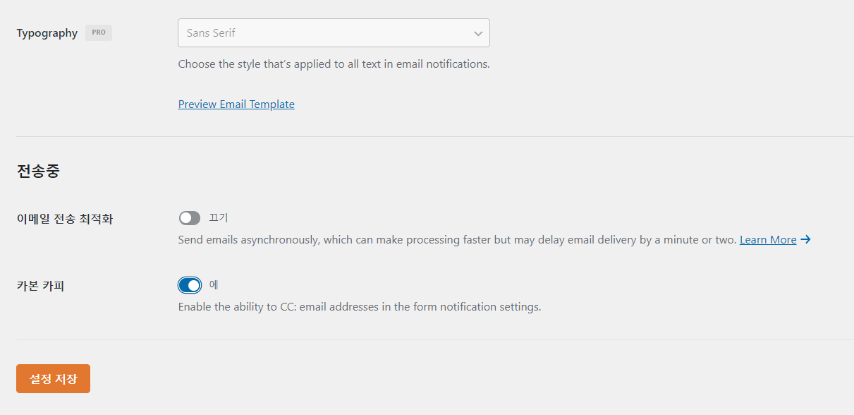 이 옵션을 활성화하면 알림 설정에서 CC: 이메일 주소를 입력할 수 있게 됩니다.