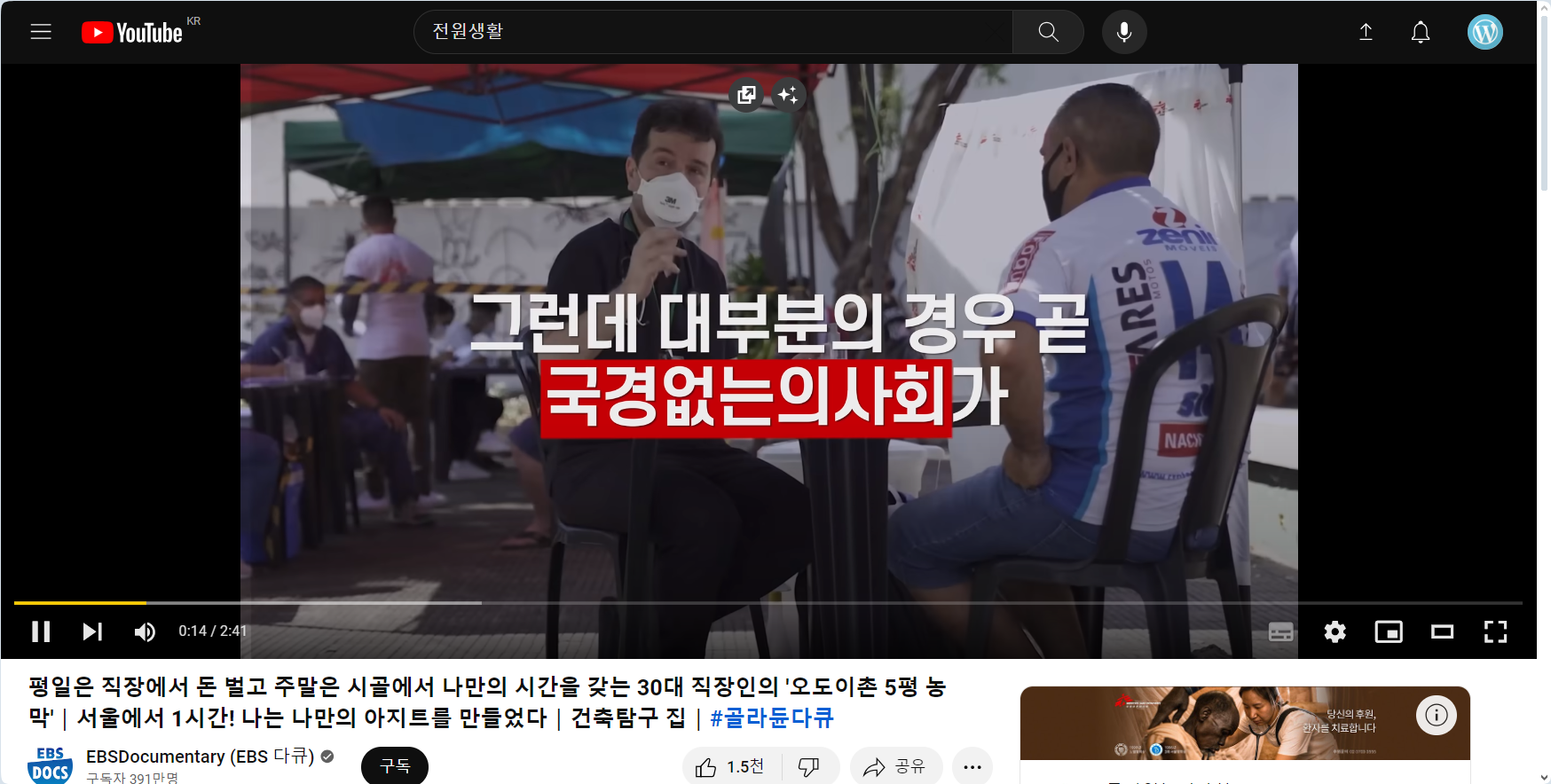 짧은 광고는 유튜브 영상 제작자들에게 도움이 될 것 같아서 그냥 시청하는 편이지만, 위의 그림과 같이 2분이 넘는 광고를 보는 것은 시간 낭비가 심하지 않나 생각됩니다.