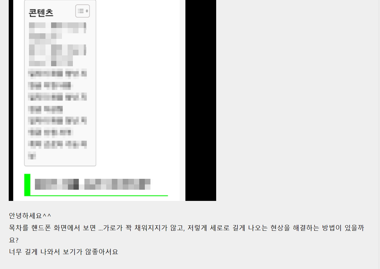 네이버 카페에 목차 상자가 가로로 채워지지 않고 한쪽으로 쏠리는 문제에 대한 질문이 올라와서 이 문제에 대하여 살펴보았습니다.