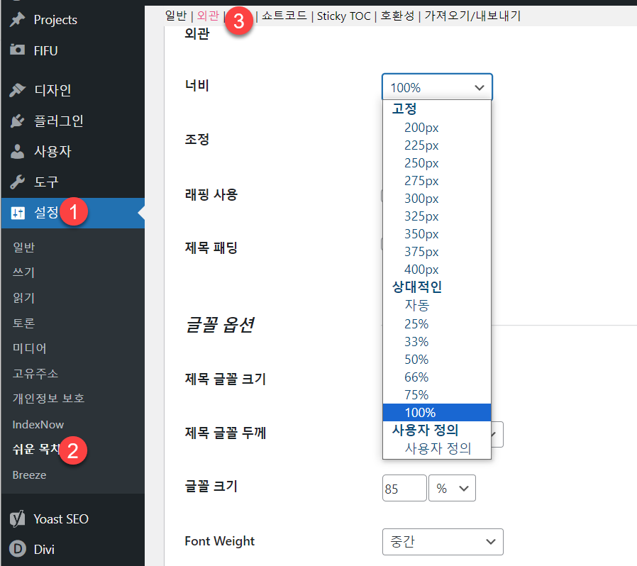 워드프레스 쉬운 목차 (Easy Table of Contents) 너비 조정하기