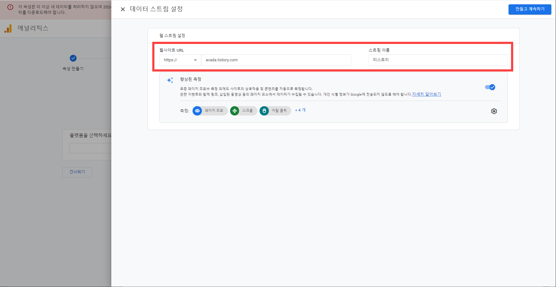 GA4 속성 만들기 및 설정 완료하기