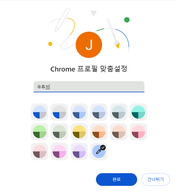 Chrome 프로필 맞춤설정 화면이 표시됩니다.