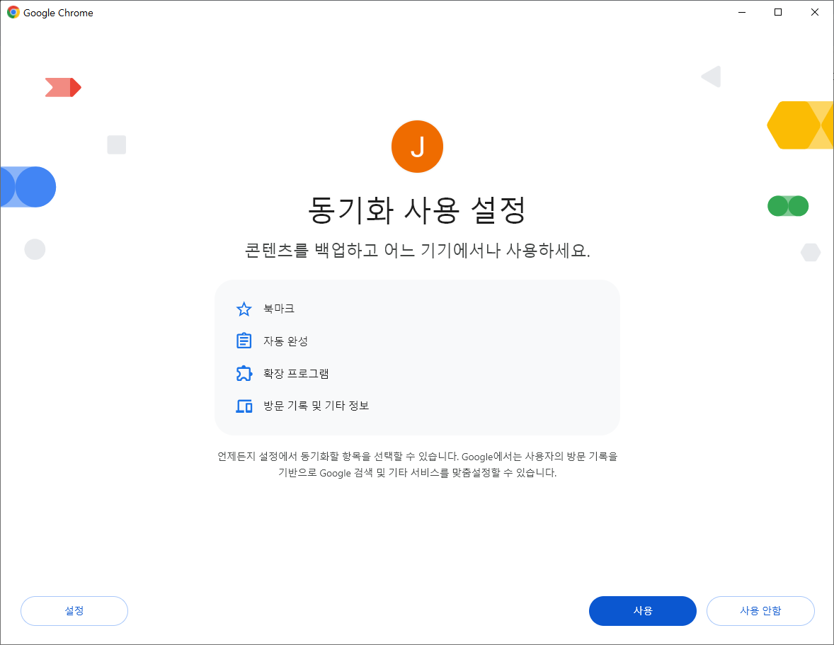 북마크, 자동 완성, 확장 프로그램, 방문 기록 및 기타 정보를 기기 간 동기화가 가능합니다.