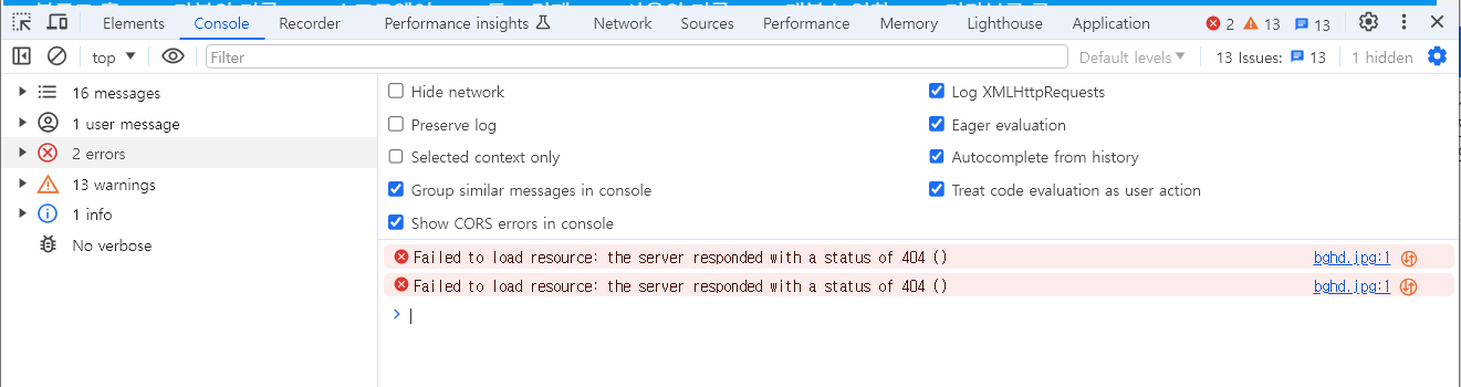 또한, 사이트에서 bghd.jpg 파일이 누락되어 Failed to load resourdce: the server responded with a status of 404 () 에러가 발생하고 있었습니다.