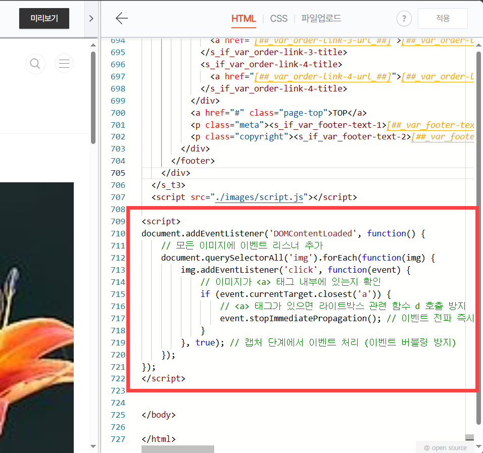 티스토리 북클럽 (Book Club) 스킨: 이미지에 링크가 있을 경우 라이트박스가 Trigger되지 않도록 비활성화하기