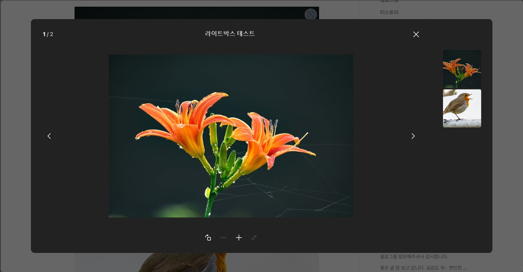 북클럽 스킨을 사용하는 경우 이미지를 클릭하면 라이트박스 팝업으로 이미지들이 표시됩니다.