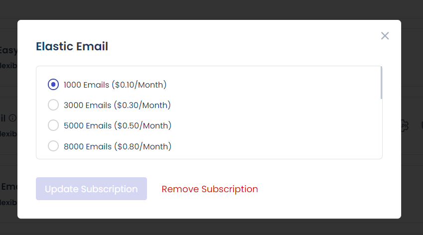Elastic Email 애드온은 1000통 이메일 발송에 월 0.1달러로 매우 저렴한 편입니다. 월 최대 100만 통(월 57달러)까지 전송이 가능합니다.