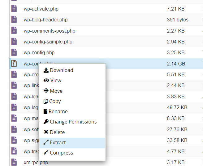 파일 관리자 툴에서 압축 파일을 선택한 다음, 오른쪽 버튼을 클릭하여 Extract를 선택하면 압축이 해제됩니다.