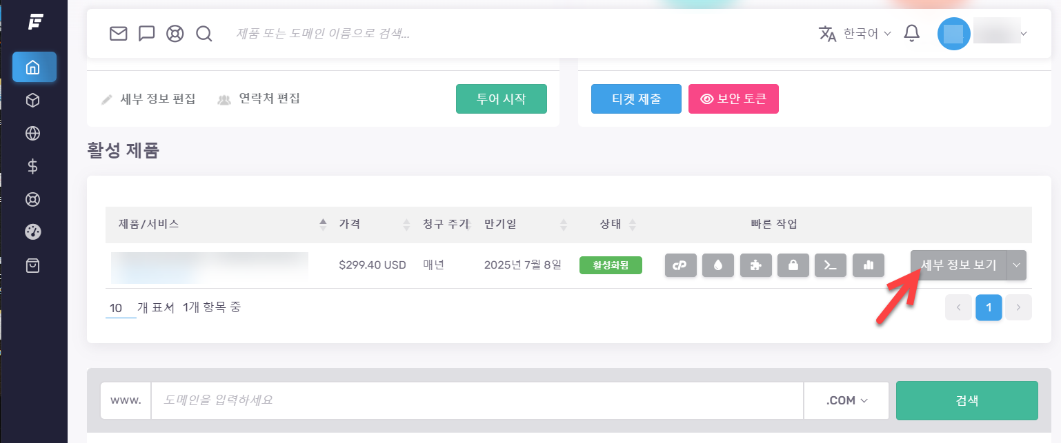 워드프레스 사이트의 데이터와 DB를 이용하여 사이트 마이그레이션을 진행할 수 있습니다. 이전이 완료되면 패스트코멧에 로그인한 후, 해당 호스팅 상품의 세부 정보 보기를 클릭하여 자세한 정보를 볼 수 있습니다.