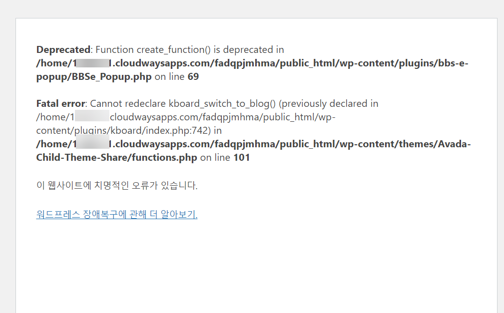 작업한 사이트는 멀티사이트로 여러 개의 사이트로 이루어져 있었고, 각 사이트는 다른 차일드 테마를 사용하고 있었습니다. 그중 한 사이트의 차일드 테마에서 치명적인 오류가 발생했습니다.