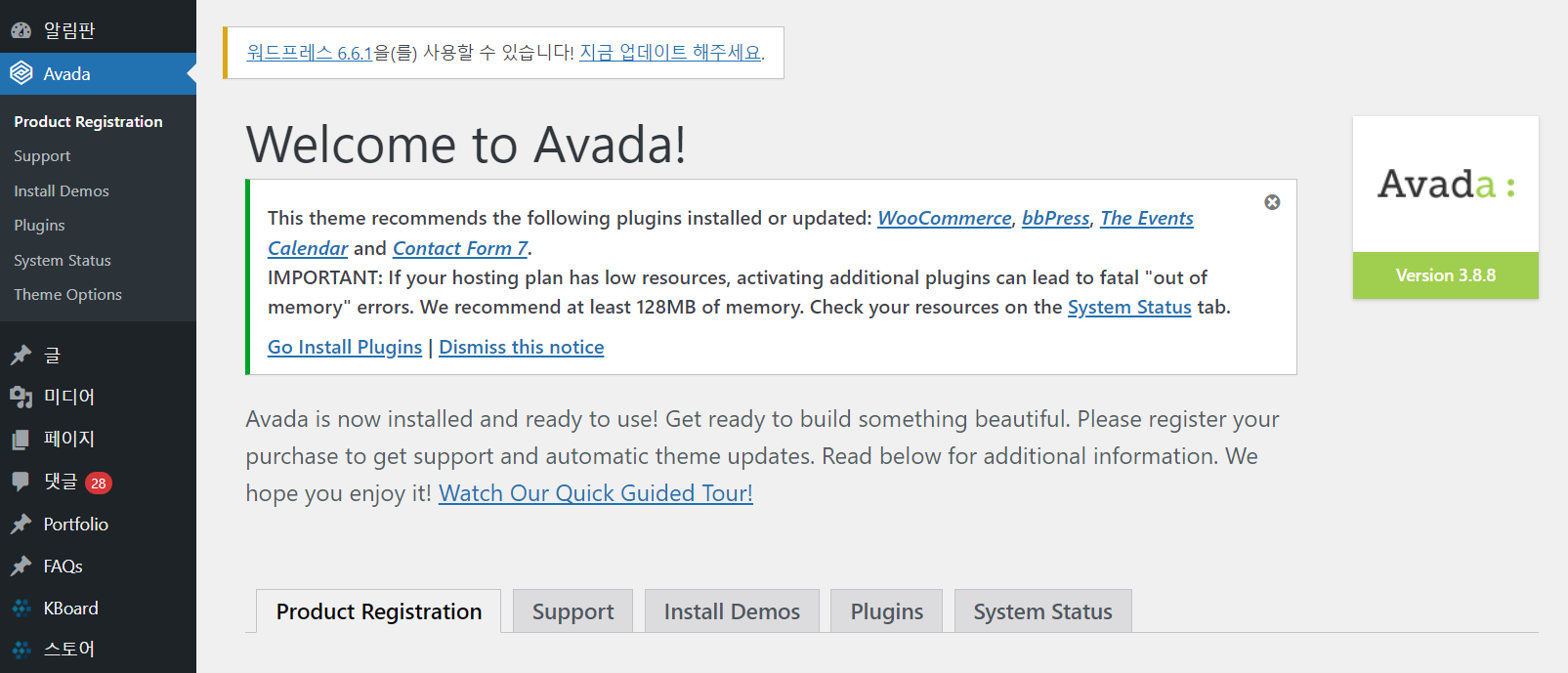 오래된 아바다 테마 버전을 사용하고 있다면 테스트 사이트에서 업데이트 테스트를 한 후에 업데이트를 진행하는 것이 안전할 수 있습니다.