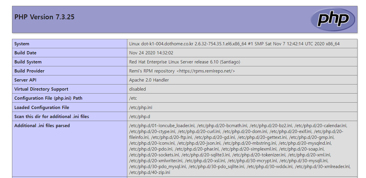 해당 사이트의 PHP 버전은 7.3.25 버전이었습니다.