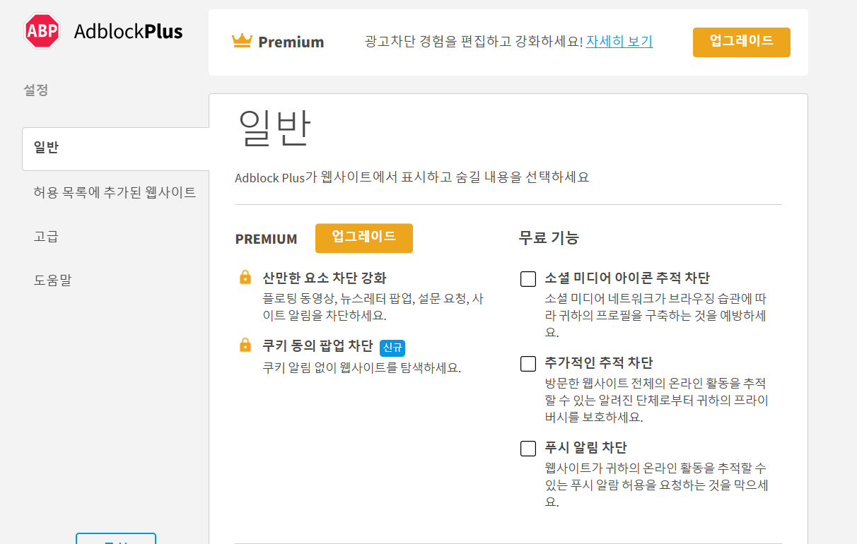 여러 가지 테스트를 해보니 AdBlock Plus라는 애드블록 앱이 활성화되면 티스토리에서 이상 증상이 나타나는 것을 확인했습니다.