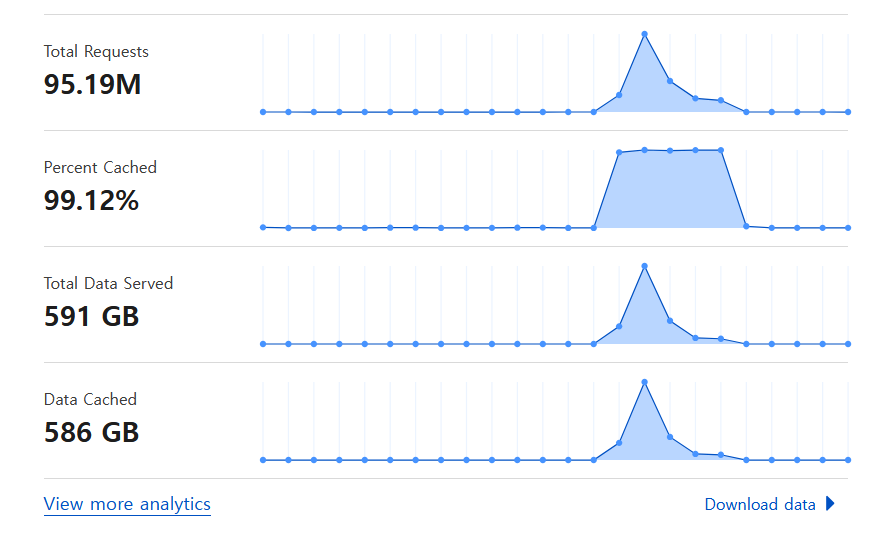 강한 강도로 공격이 들어와서 서버가 일시적으로 다운되었지만, Cloudflare에서 Under Attack 모드로 전환하니 몇 분 후에 사이트가 정상화되었습니다.