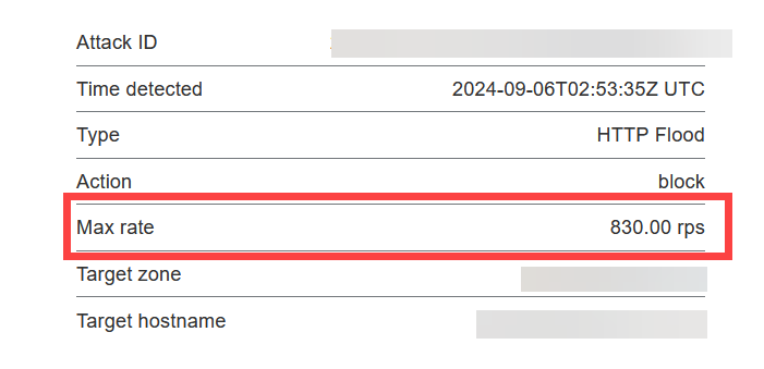 이 숫자는 DDoS 공격으로 인해 서버로 매우 많은 요청이 동시에 들어오고 있음을 나타내는 중요한 지표입니다. 초당 830개의 요청은 상당히 높은 요청 속도로, 서버가 이를 처리하지 못하면 성능 저하나 서비스 중단이 발생할 수 있습니다.