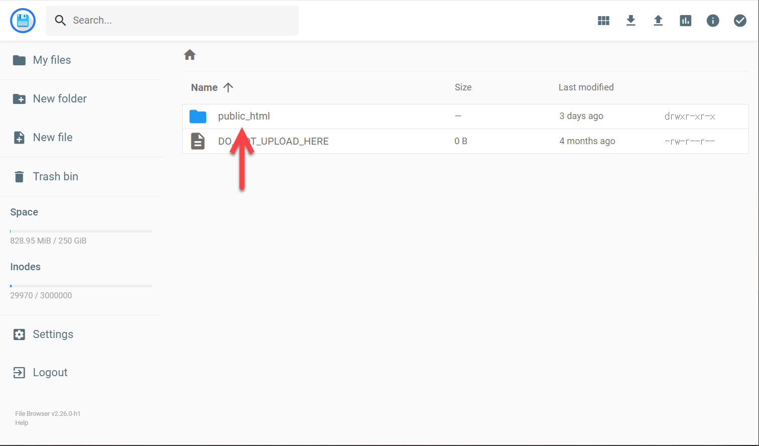 3. 파일 관리자 툴에 접속하면 [**public_html**] 디렉터리를 클릭합니다.