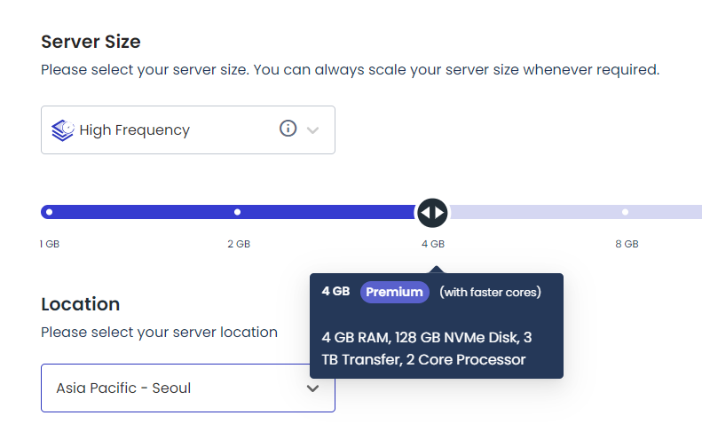 Vultr에서 할당된 대역폭을 초과할 경우 북미와 서유럽 서버의 경우 GB당 0.01달러가 청구됩니다. 지역에 따른 비용 증가로 인해 싱가포르와 도쿄(일본) 서버의 경우 GB당 0.025달러가, 시드니(호주) 서버는 GB당 0.05달러가 청구됩니다.