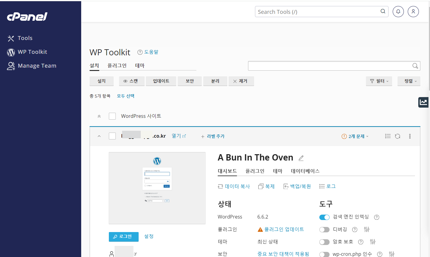 워드프레스를 설치하고 관리할 수 있는 WP Toolkit의 인터페이스도 한국어로 변경됩니다.
