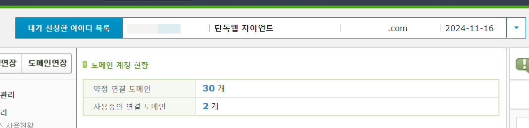 단독웹 자이언트라고 표시되네요. 약정 연결 도메인이 30개까지 지원됩니다.