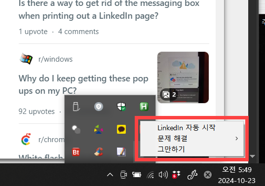 윈도우 시작 시 링크드인(LinkedIn) 로그인 창이 표시되는 문제