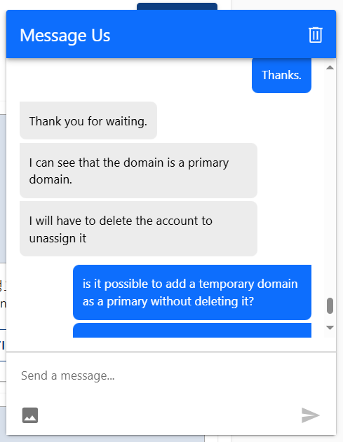 - 도메인을 새 계정에 연결할 때 Primary Domain인 경우 계정을 삭제해야 한다는 답변을 들을 수 있습니다. 그런 경우 계정을 삭제하지 말고 임시 도메인을 연결해 달라고 강력히(?) 요청하시기 바랍니다. 그러면 상부 서버 관리자에게 연락하여 처리해 줄 것입니다.