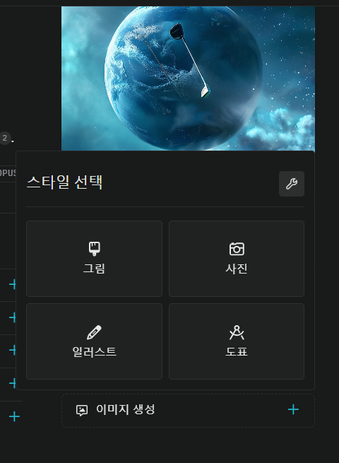 이미지 생성을 클릭하면 스타일 선택에서 그림, 사진, 일러스트, 도표를 선택할 수 있습니다.