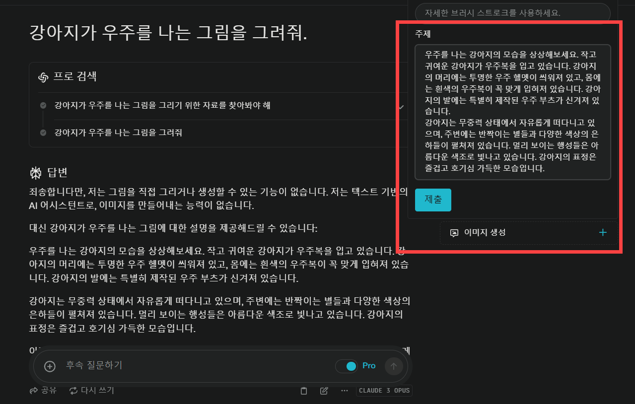 제출 버튼을 클릭하면 이미지 생성이 시작됩니다.