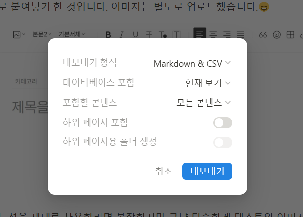 노션에서 글을 작성한 후에 마크다운 형식으로 내보내기 할 수 있습니다.