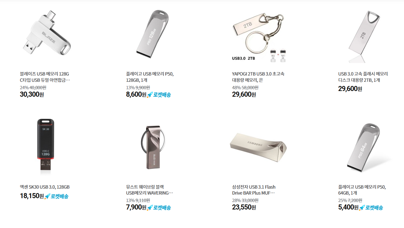 USB 메모리가 과거보다 가격이 많이 저렴해진 것 같습니다. 128GB가 1만원 미만에 판매되고 있네요.
