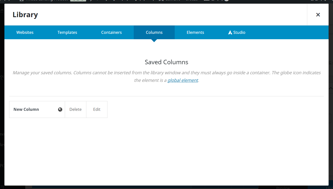 이상으로 아바다 테마에서 컨테이너, 컬럼, 엘리먼트를 라이브러리로  저장하여 재활용하는 방법에 대하여 살펴보았습니다. 반복되는 요소는 전역(Global)으로 저장하여 활용하면 시간과 노력을 절감할 수 있습니다.