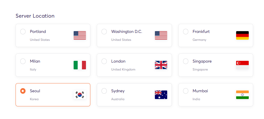 서울이 아닌 다른 지역의 서버를 선택하는 경우 추후에 서버를 변경하려면 10달러의 비용이 청구됩니다. (서버 변경은 케미클라우드 직원에 의해 수행된다고 합니다.)