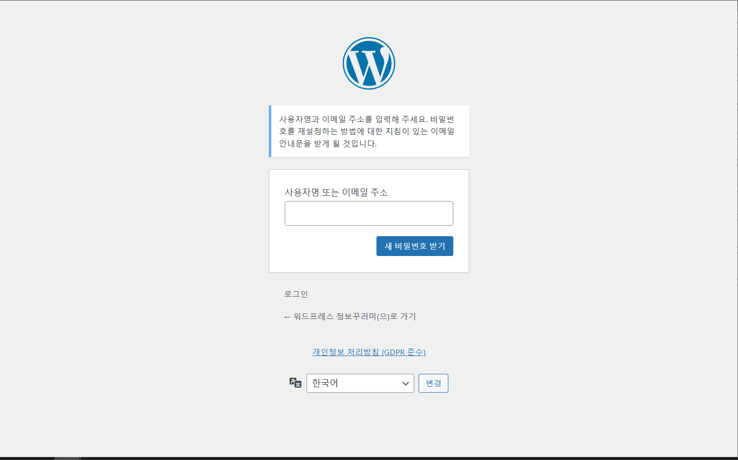 비밀번호를 재설정하려면 사용자명이나 이메일 주소 중 하나를 알고 있어야 합니다. 관리자 이메일 주소가 지메일인 경우에는 메일이 전송되지 않을 수 있습니다.